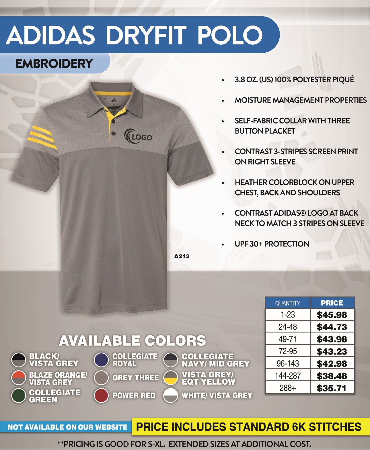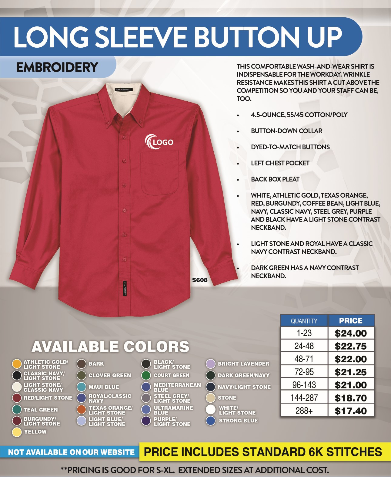 - No Set up on Printing and Embroidery