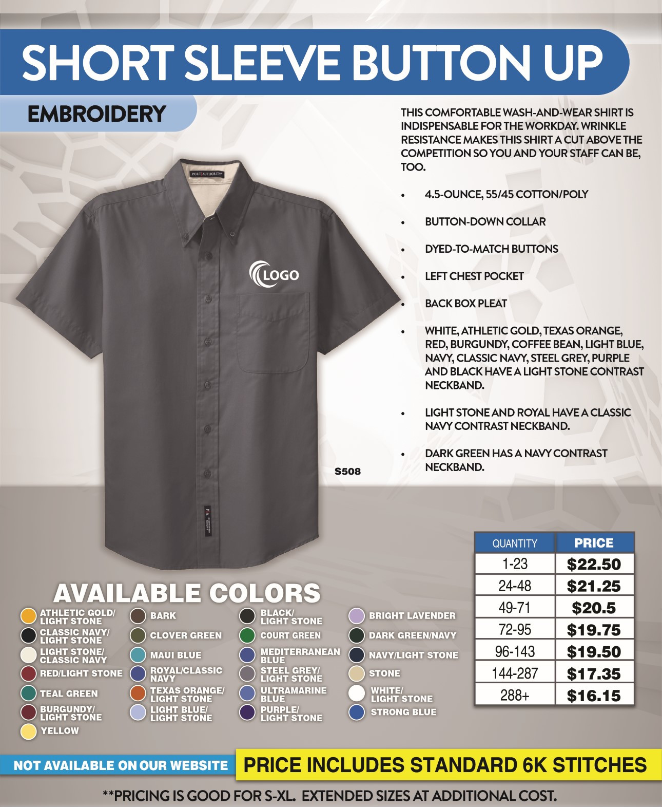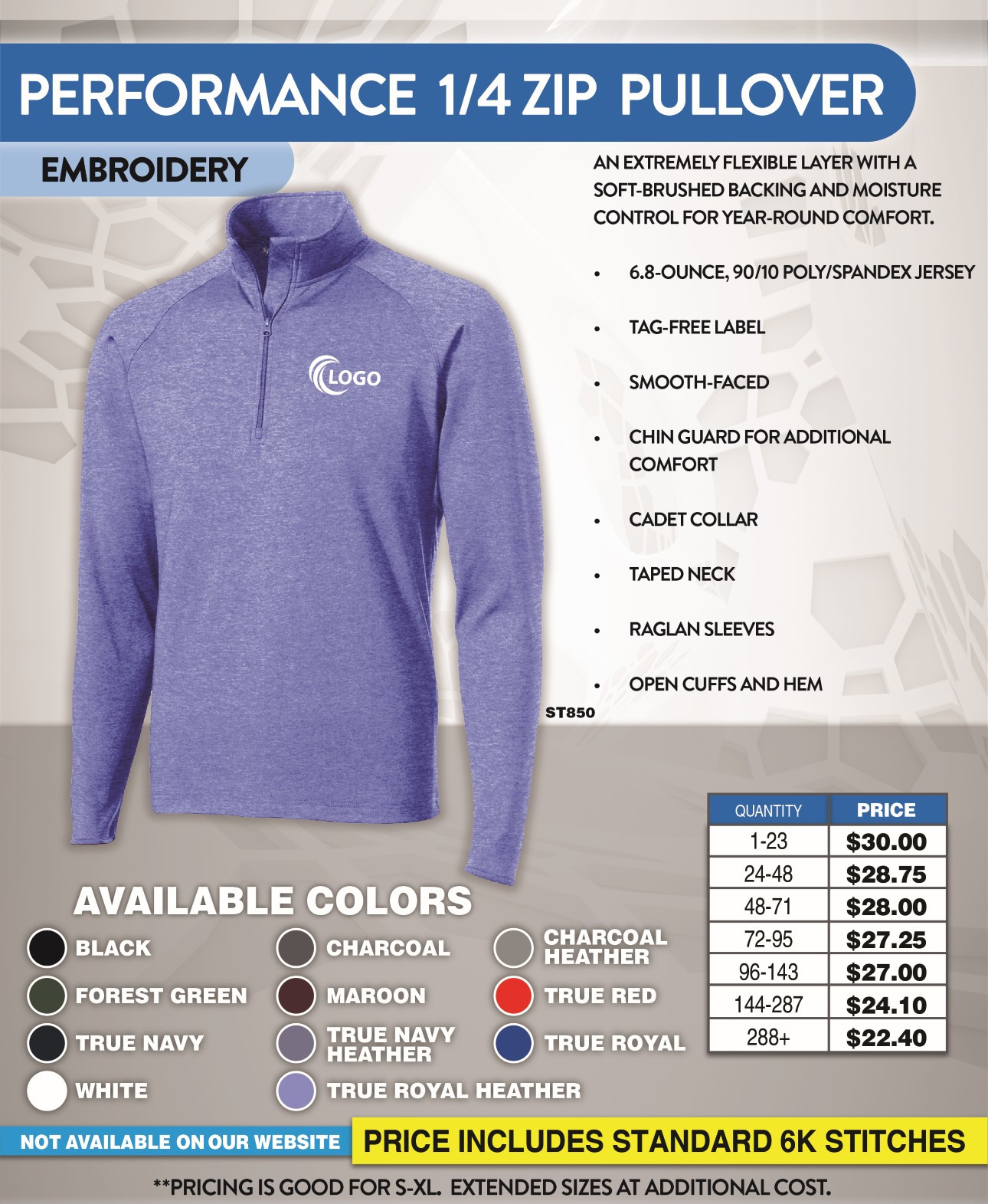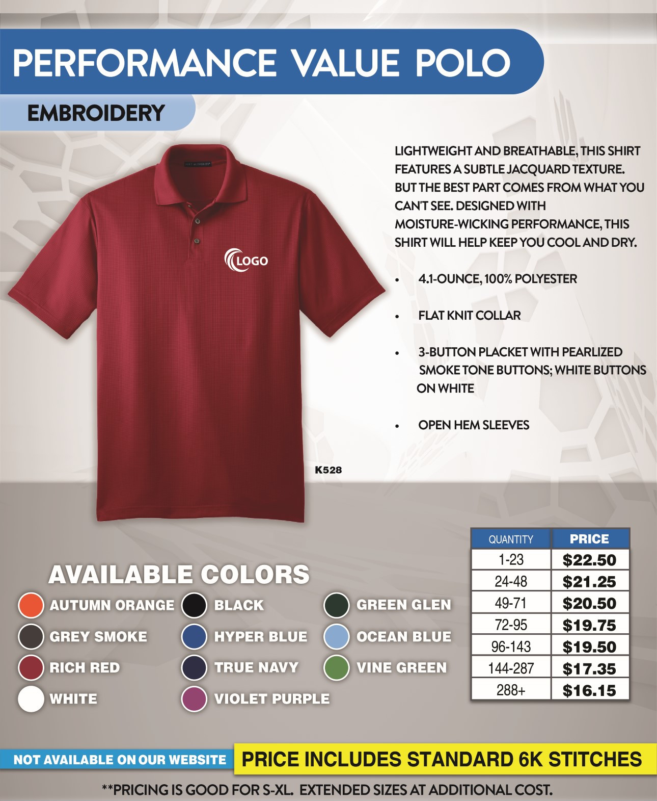 - No Set up on Printing and Embroidery